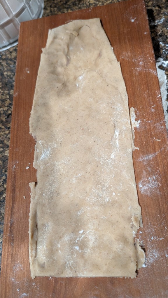 5. If making cutout cookies, flour the counter surface and roll dough to 1/4″ thickness. Then, cut the cookies out using the cookie cutters and lay them spaced apart and not touch on the parchment-lined baking sheets. Then, skip to Step 8. If using a cookie mold, generously flour the mold so that the dough will come out easily. (I loved watching the features of the mold “pop” out once I coated them in flour!)
